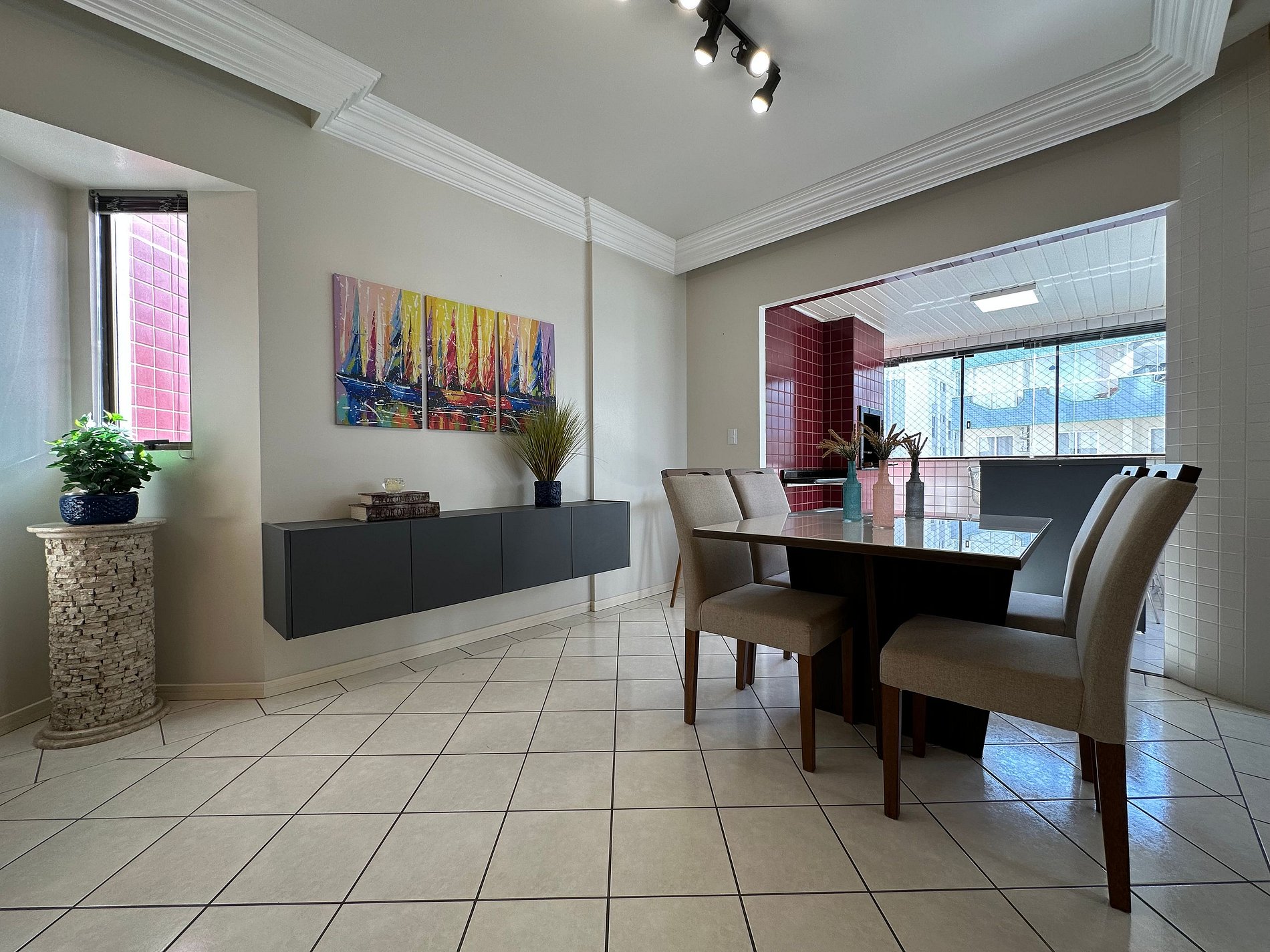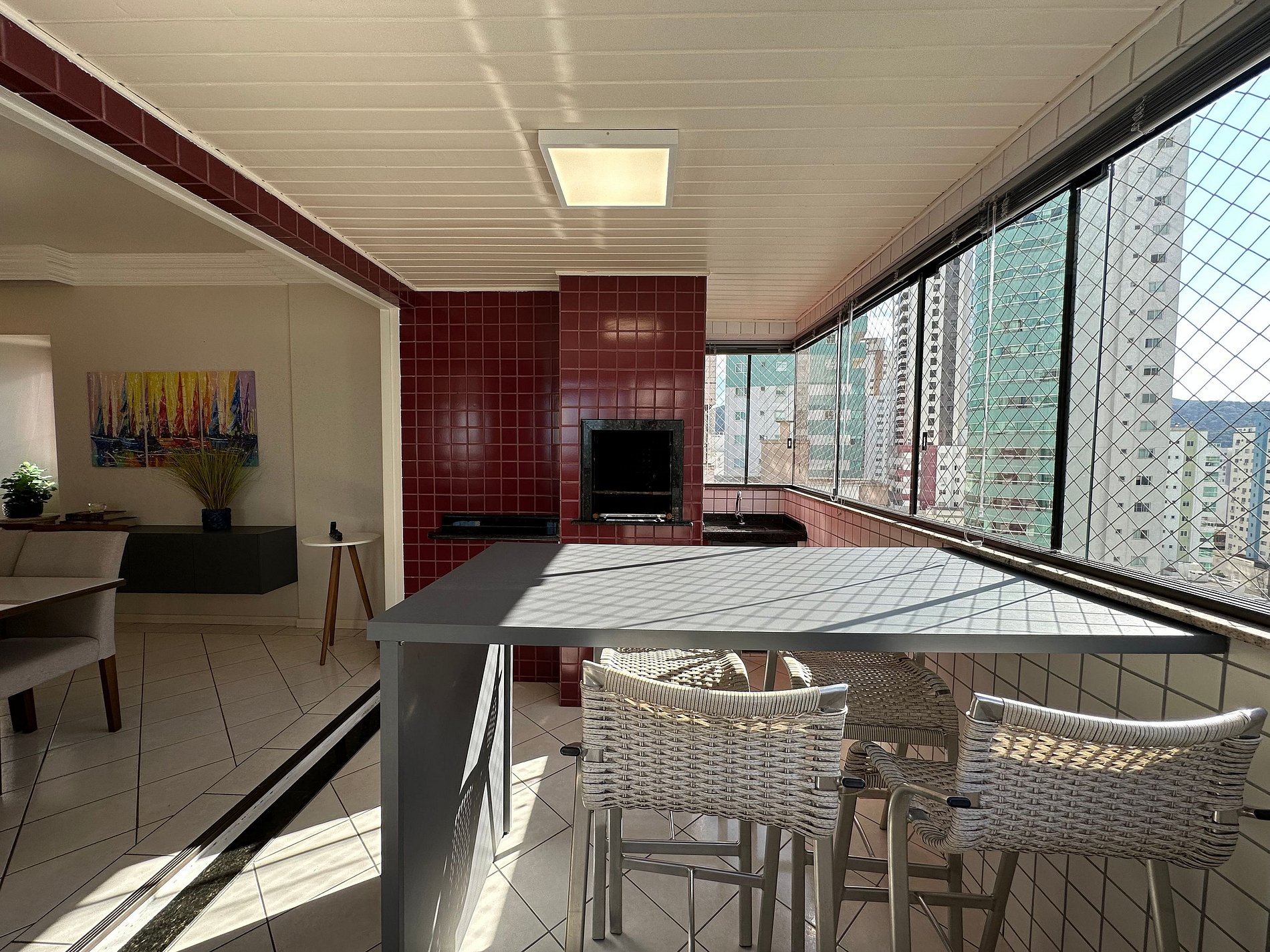 - Sacada ampla com churrasqueira , fechada com vidro e tela de segurança