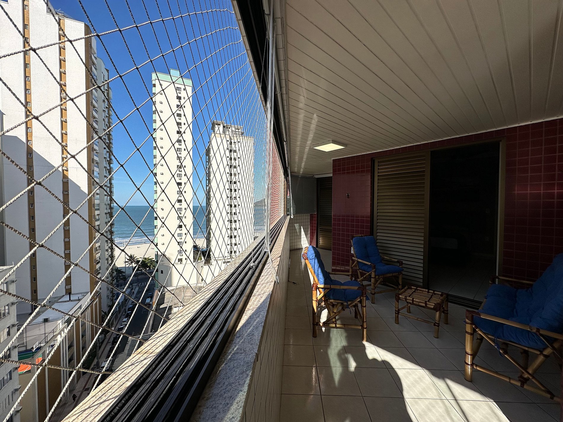 Excelente apto no centro de Balneário Camboriú, à uma quadra da praia central. Composto por 2 quartos sendo 1 suíte, ambos quartos devidamente climatizados e confortáveis com camas box novas. Sacada ampla com vista para o mar, tela de proteção para maior tranquilidade das famílias com crianças pequenas, cozinha muito bem equipada para curtas e longas estadias. Sala com área de jantar e sacada aberta dando mais amplitude e integração entre os ambientes. Garagem privativa de fácil acesso