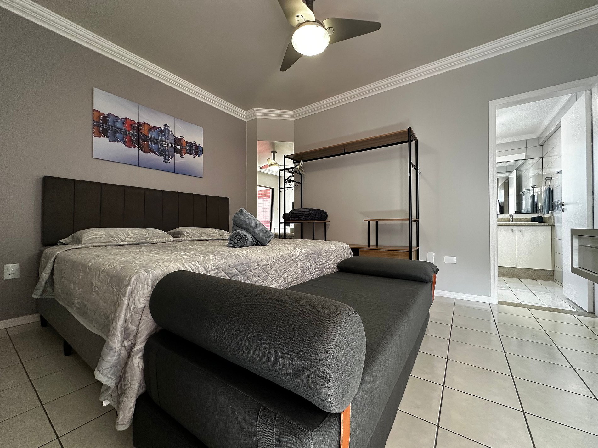 - QUARTO 1: Suíte com Cama Box King Size, Ar Condicionado Split, TV com canais abertos e Guarda Roupa