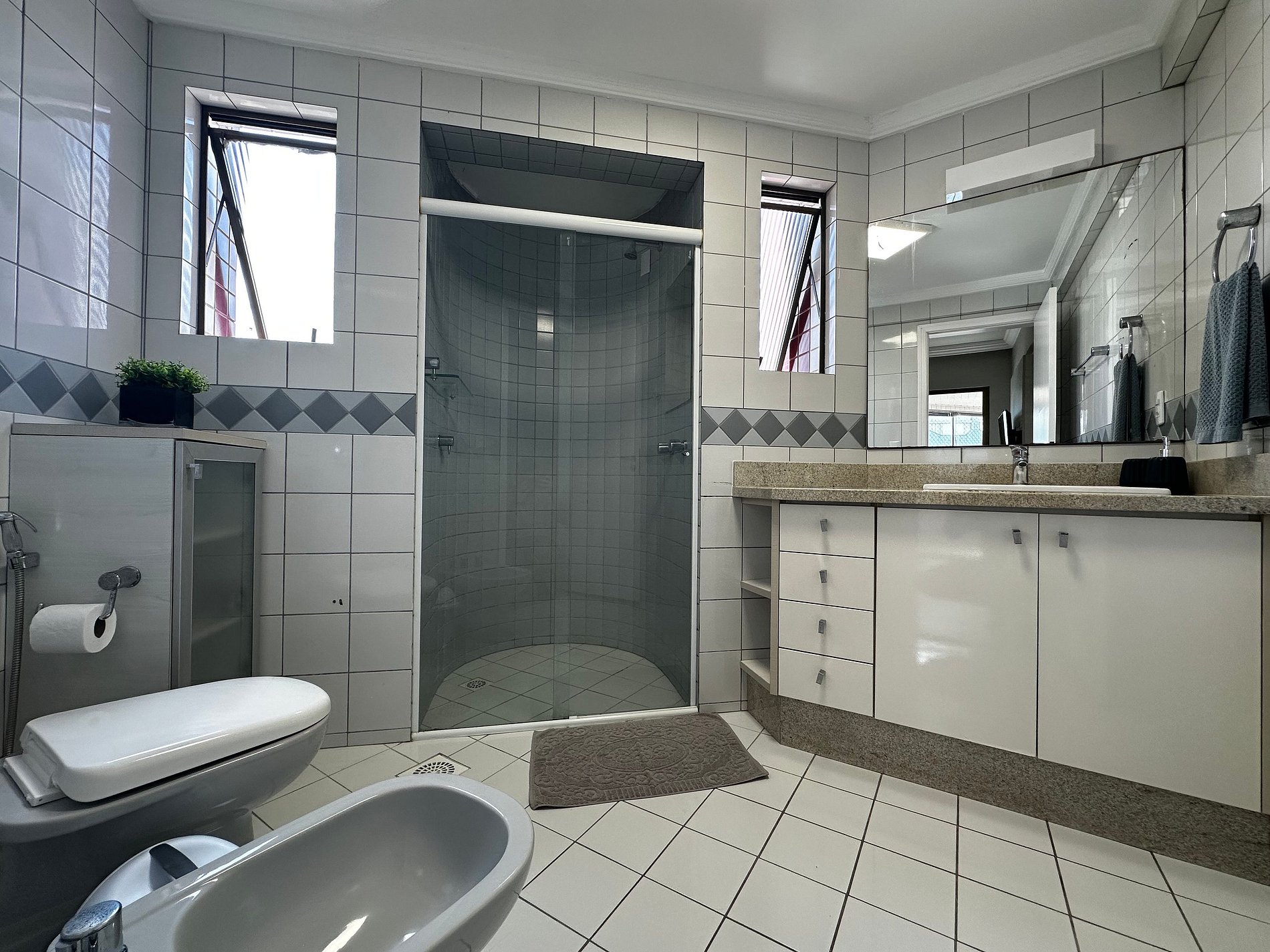 - Uma vaga de garagem privativa acomoda carros grandes e caminhonetes