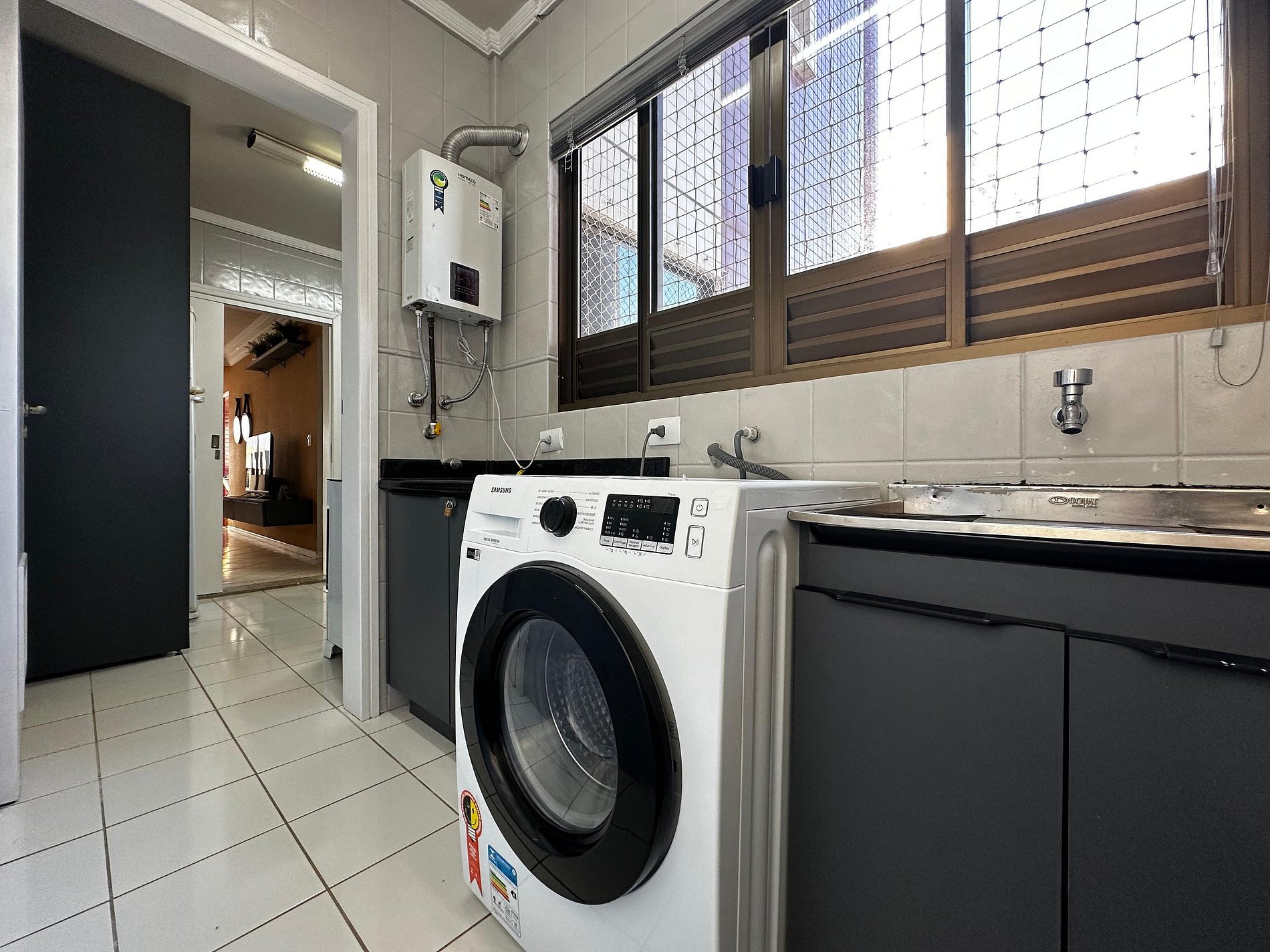 - Área de serviço com maquina de lavar e tanque
