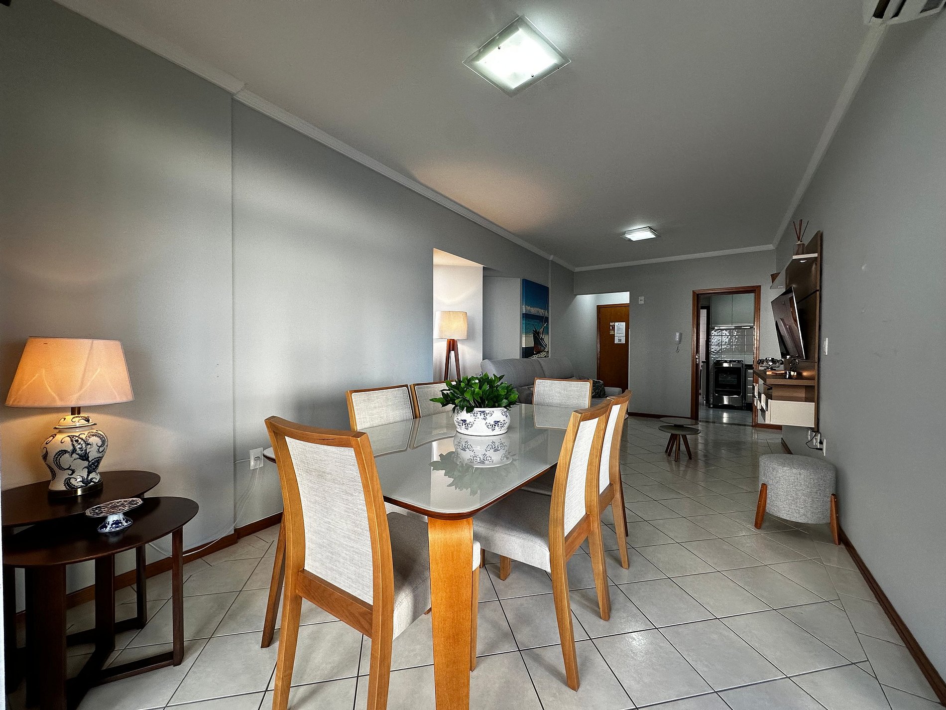 - Sala ampla com mesa de jantar integrada com 6 lugares
