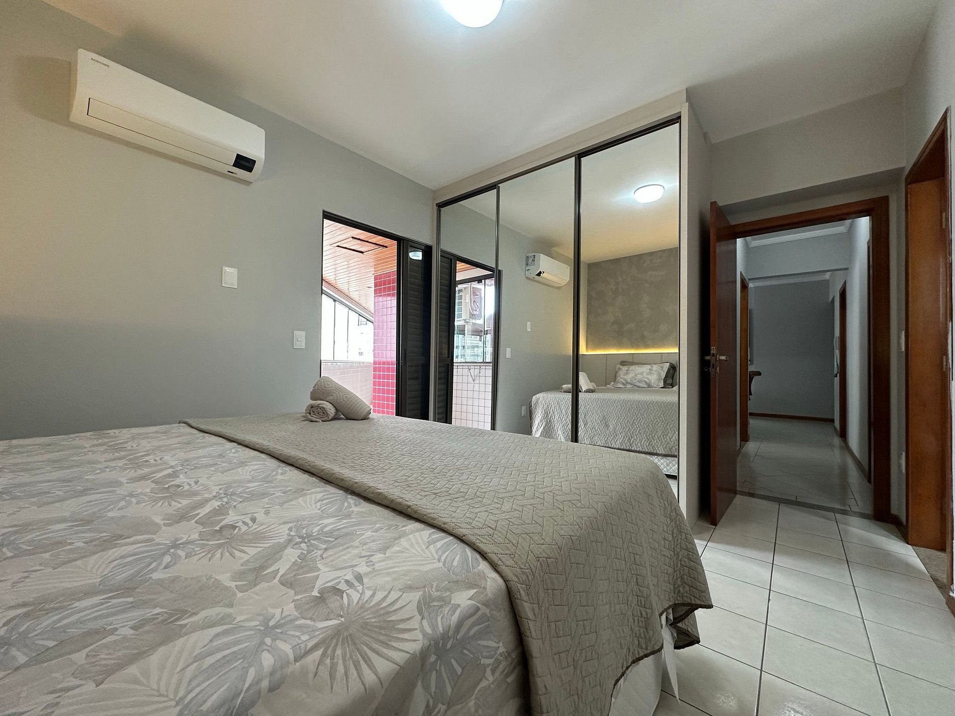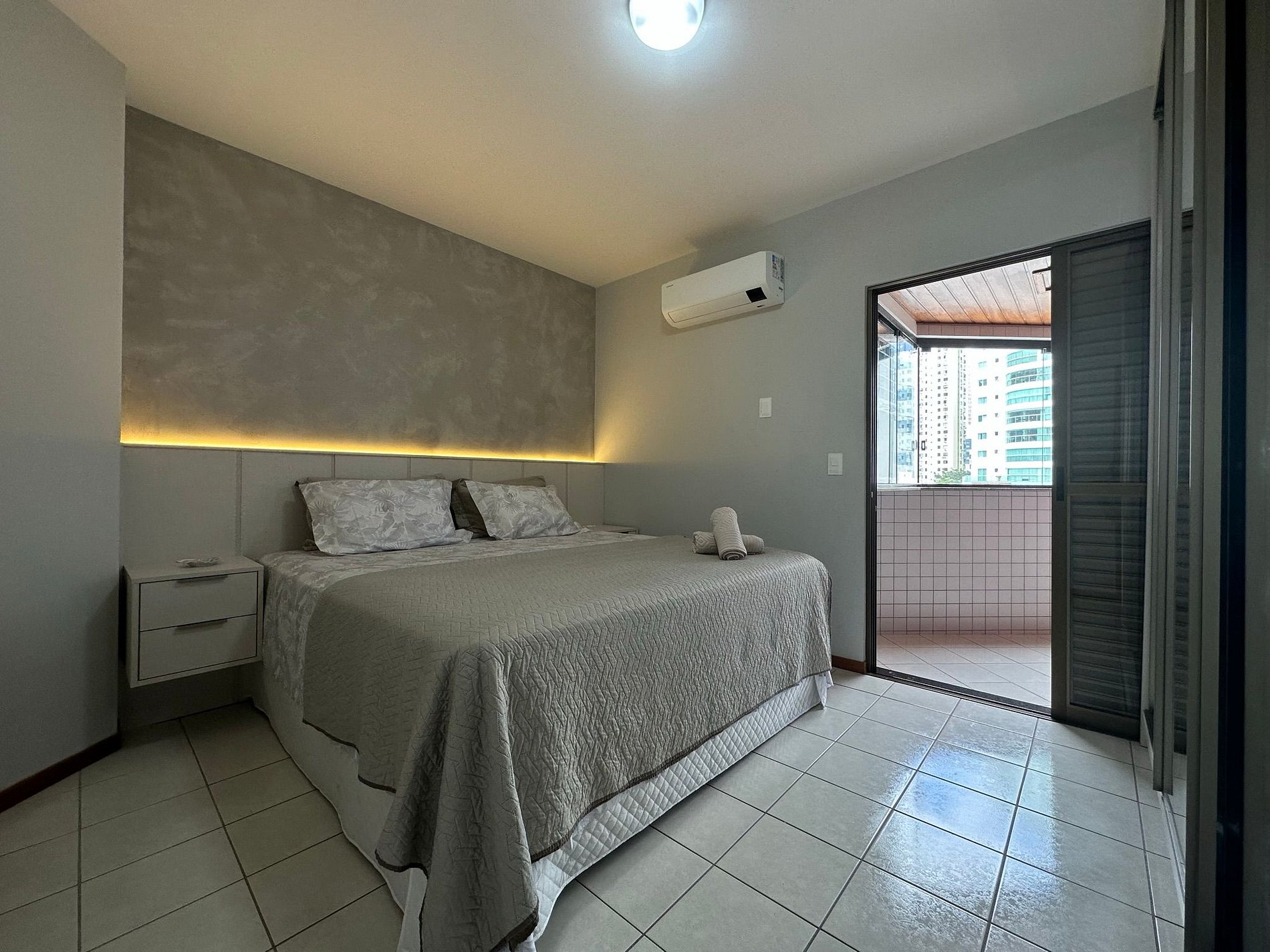 - QUARTO 1: Suíte com cama casal King Size + guarda roupa porta espelho