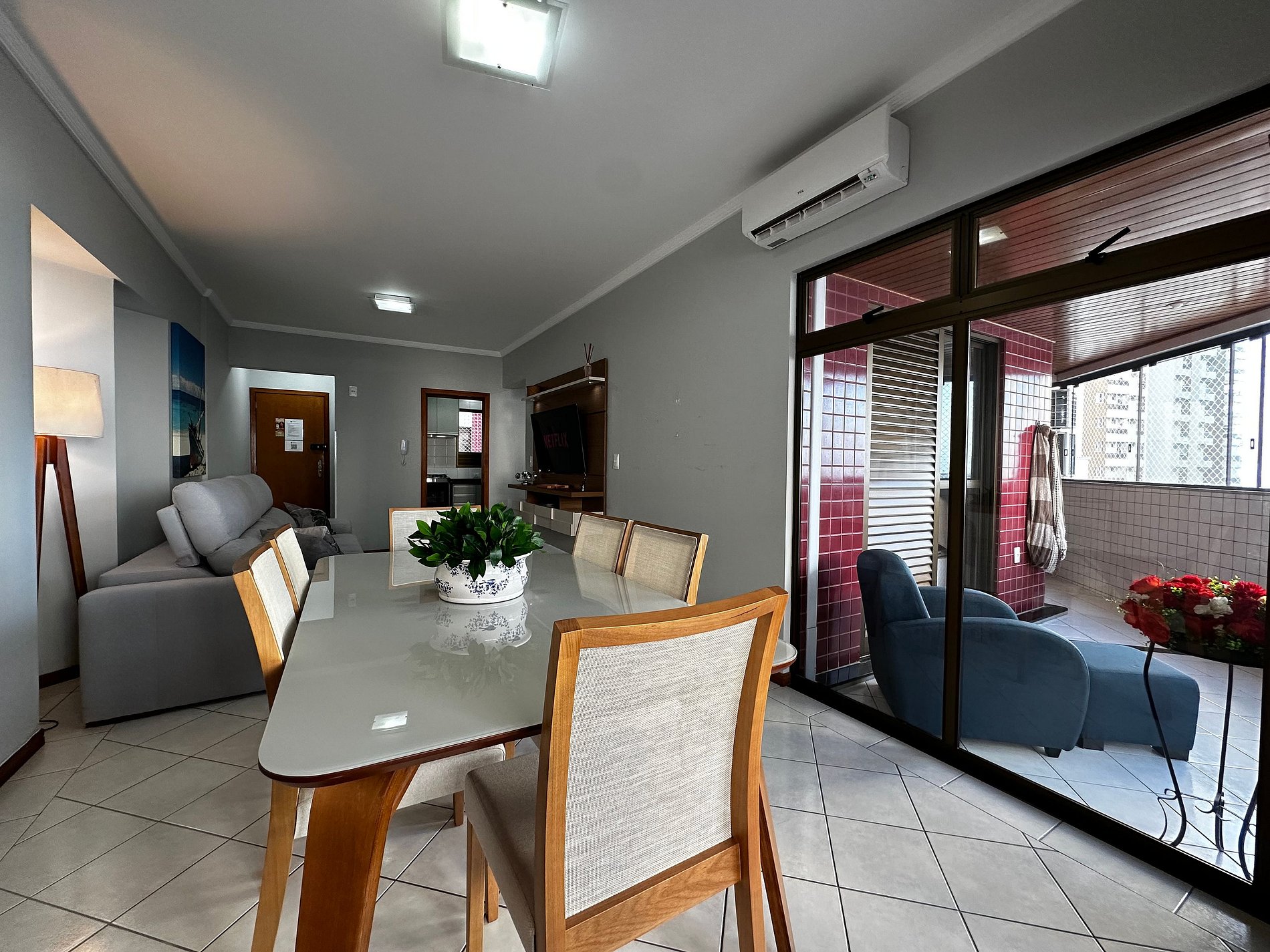 - Sala ampla com mesa de jantar integrada com 6 lugares