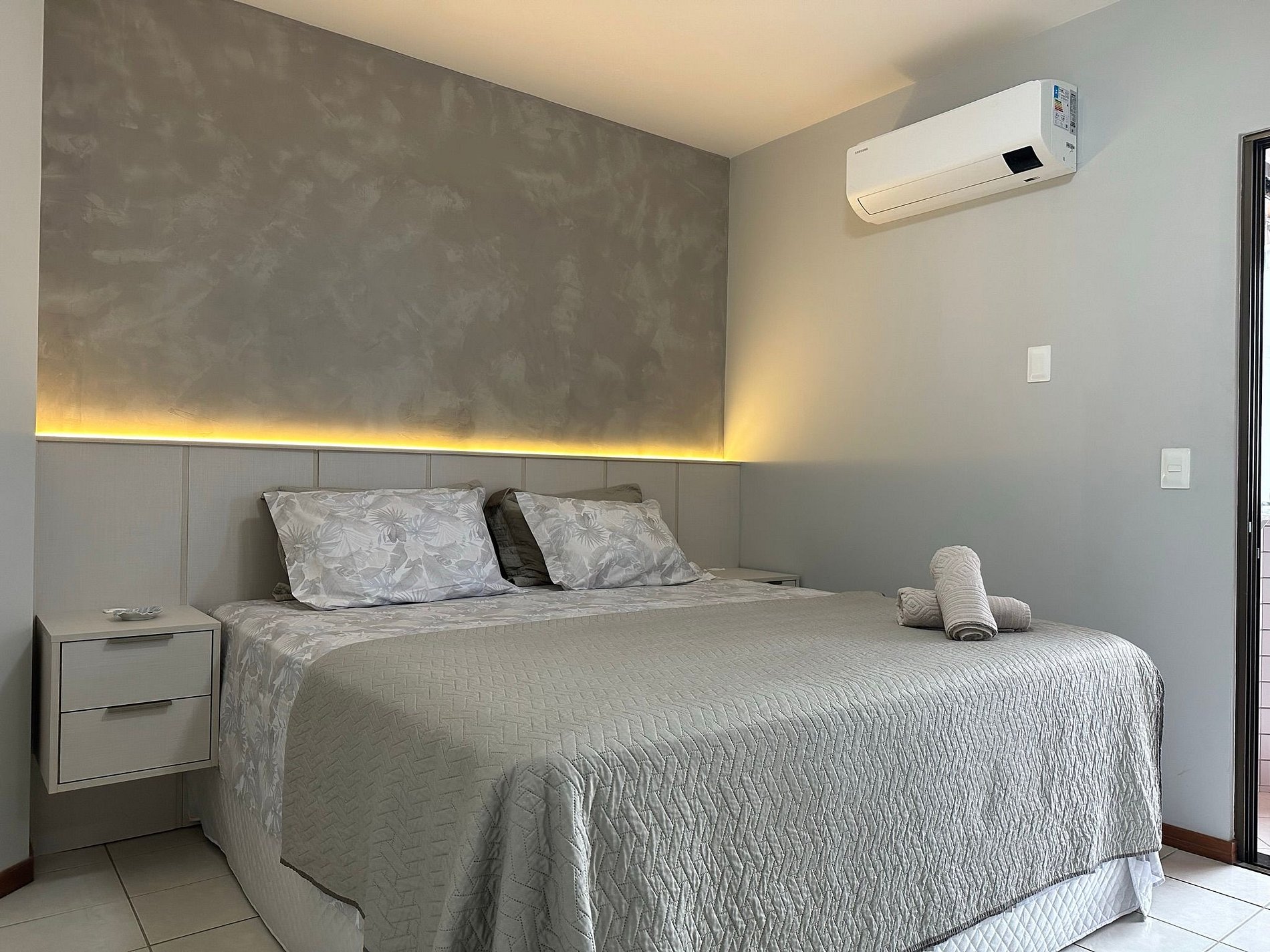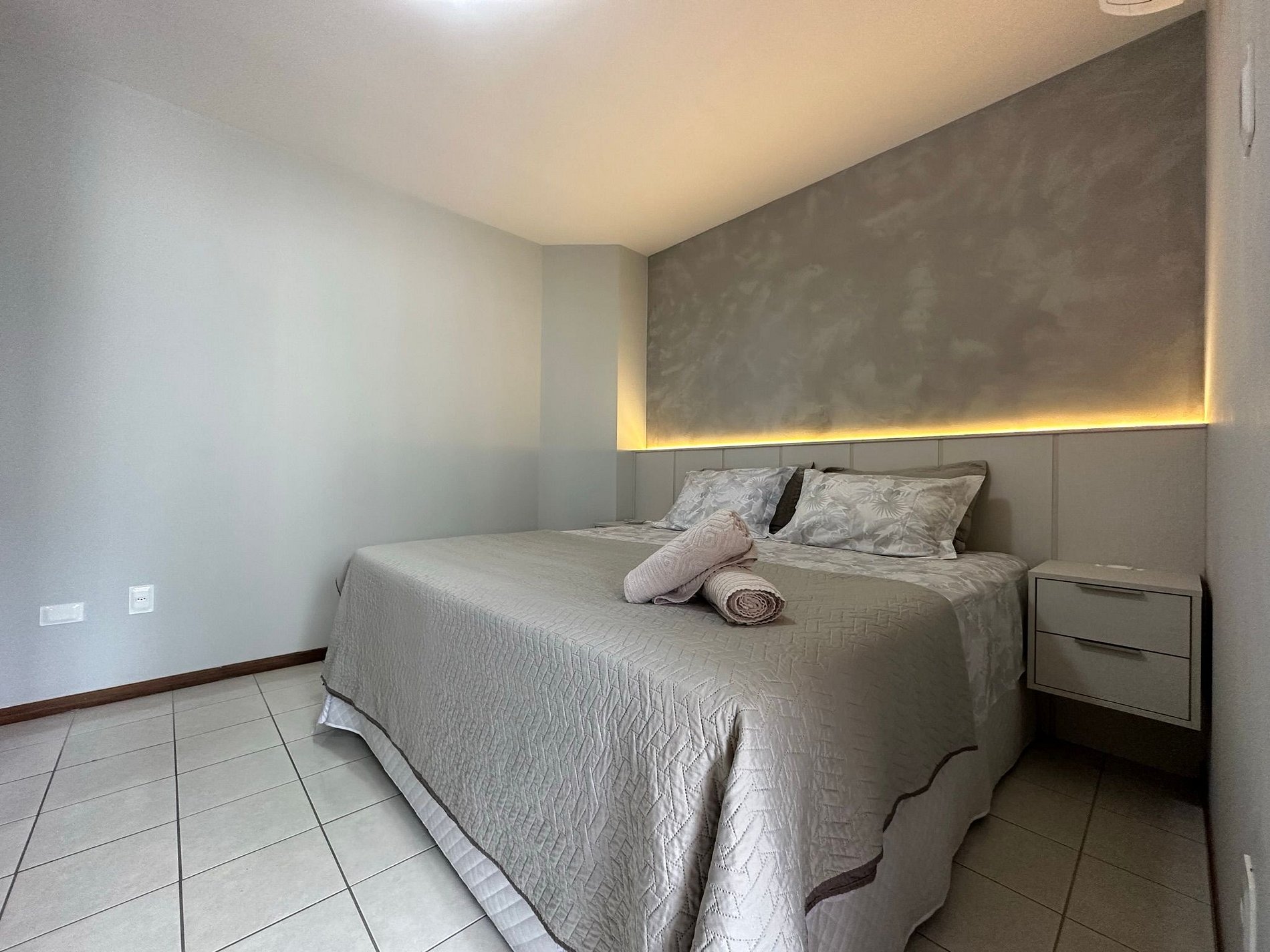 - QUARTO 1: Suíte com cama casal King Size + guarda roupa porta espelho