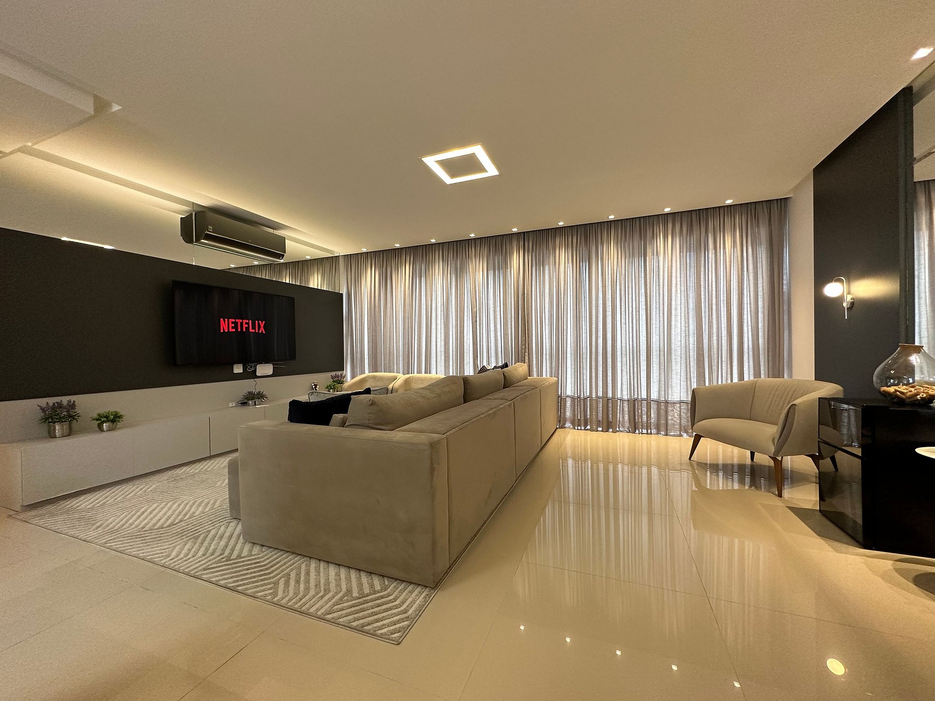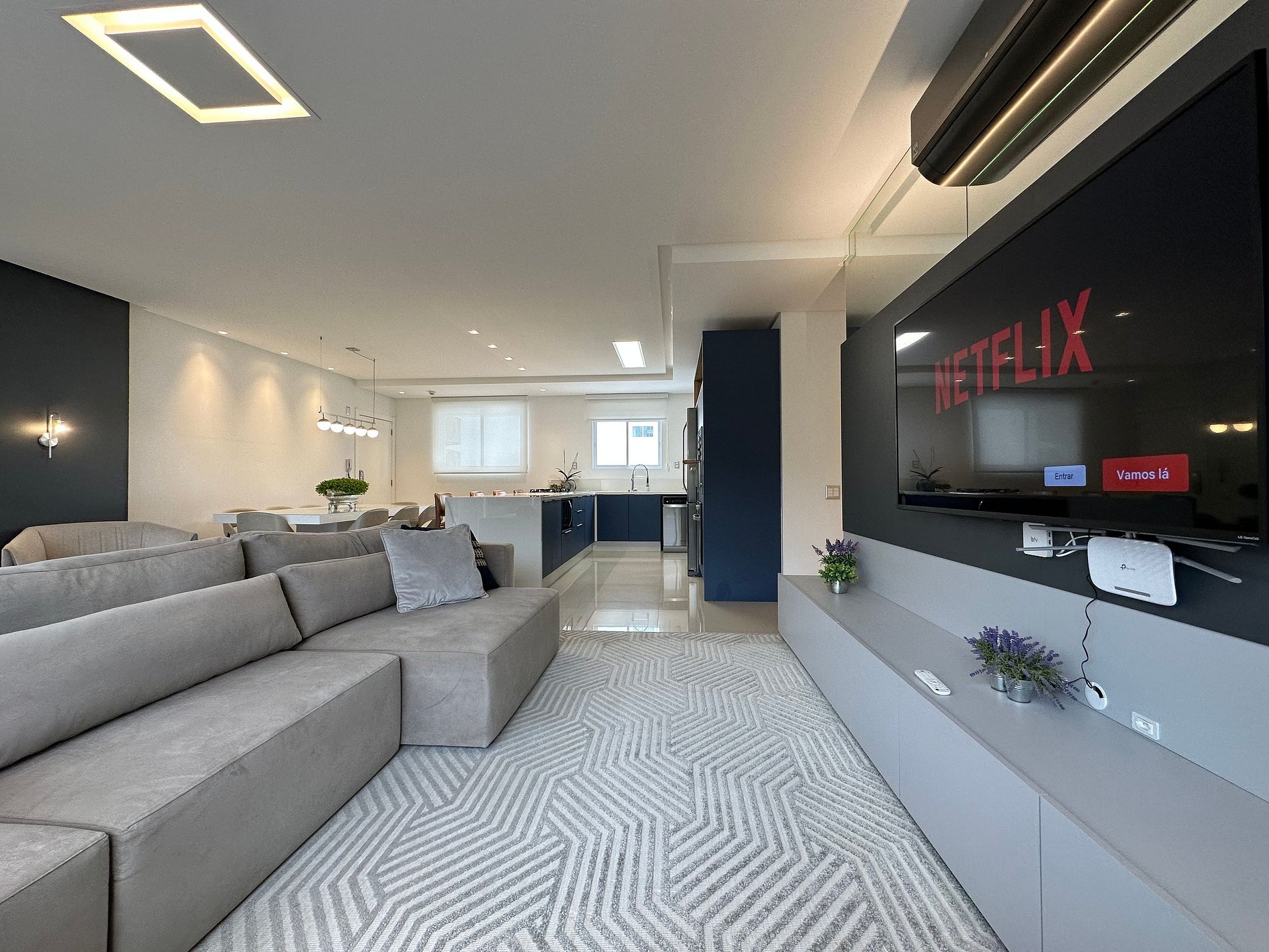 Belíssimo apto de alto padrão localizado em Balneário Camboriú, região norte, na rua da roda gigante! Composto por 4 suítes, todas devidamente climatizadas e com blackout 100% elétricos, living aberto e integrado com a copa para maior amplitude e integração, finamente decorado para fazer aquele conforto à mais. Cozinha muito bem equipado para curtas e longas estadias com churrasqueira à gás e cervejeira. Acomoda até 8 hóspedes em camas box Queen Size e TVs Smart nos quartos. 2 vagas de garagem