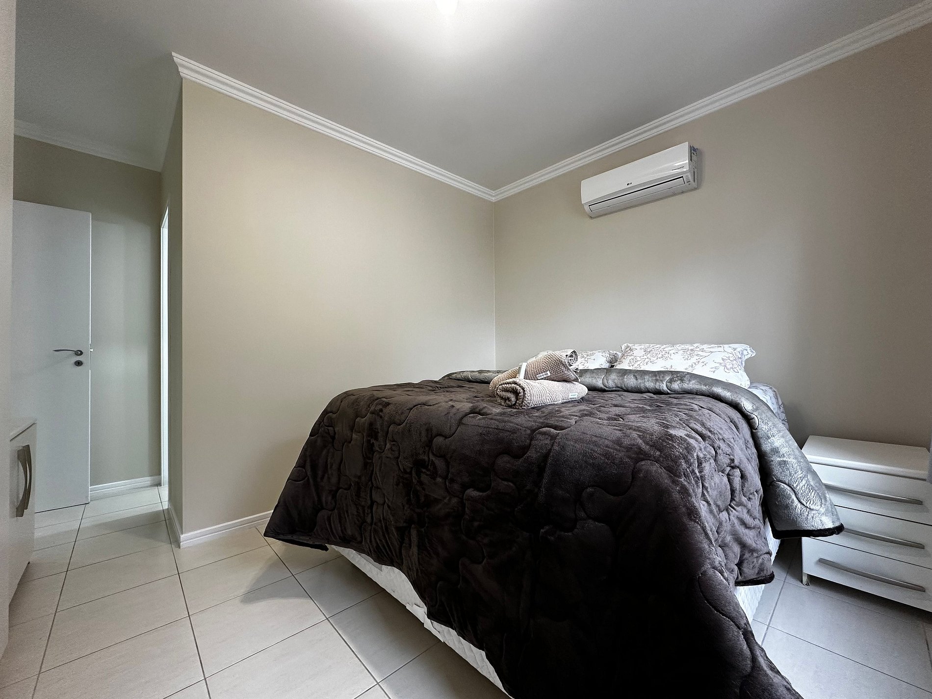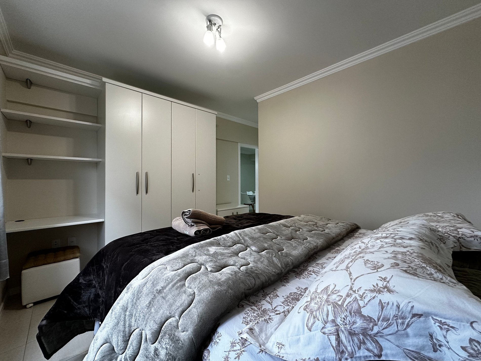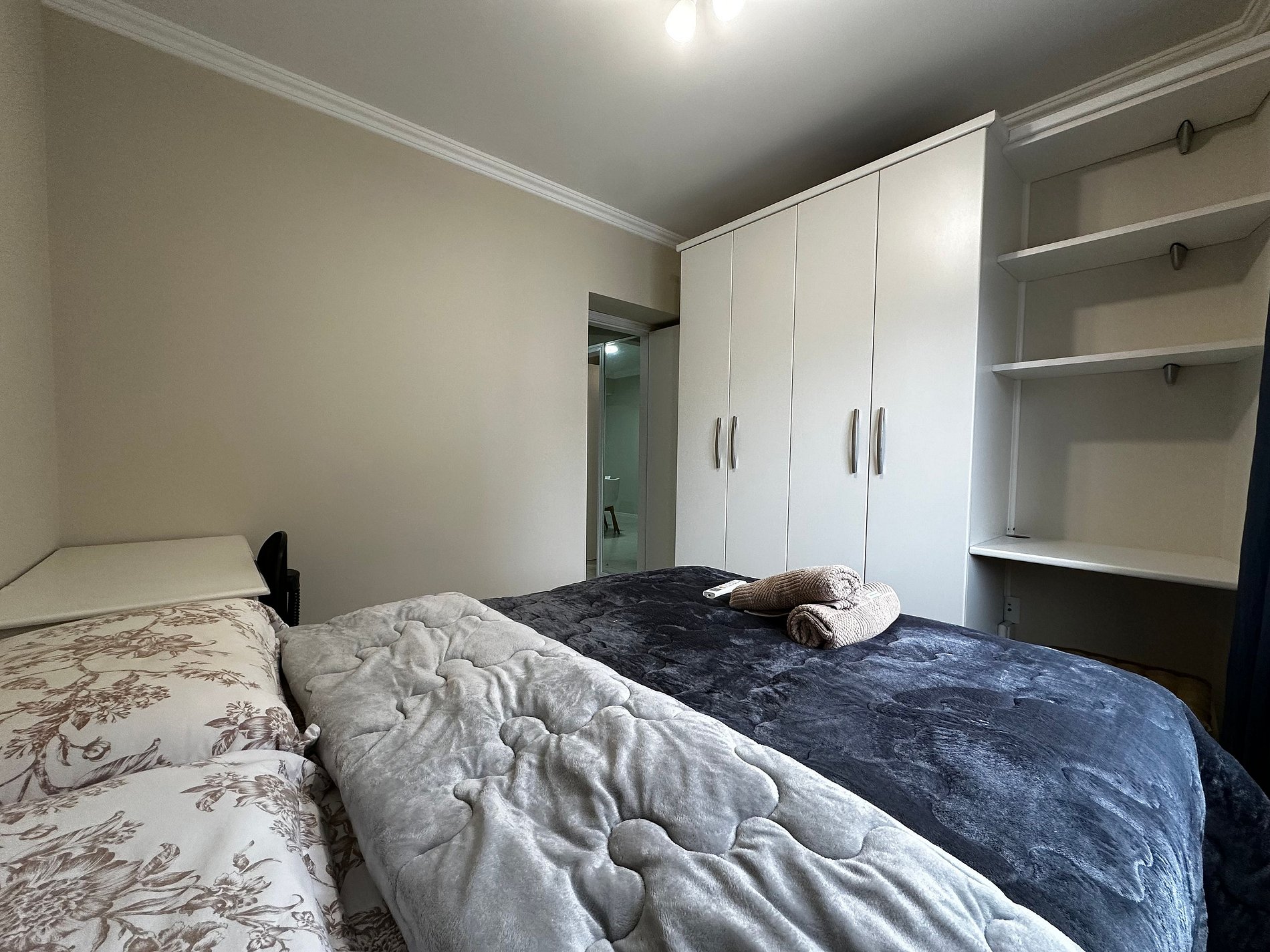 - QUARTO 1: Suíte com cama de casal box Queen Size