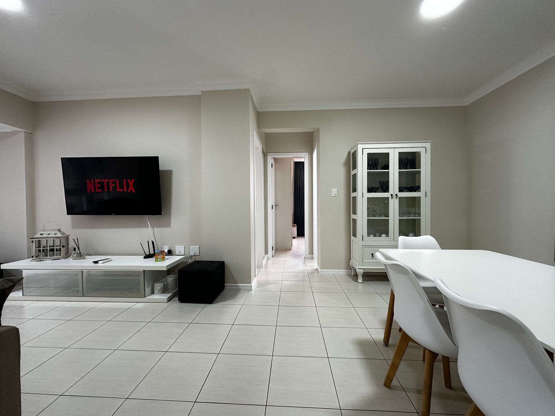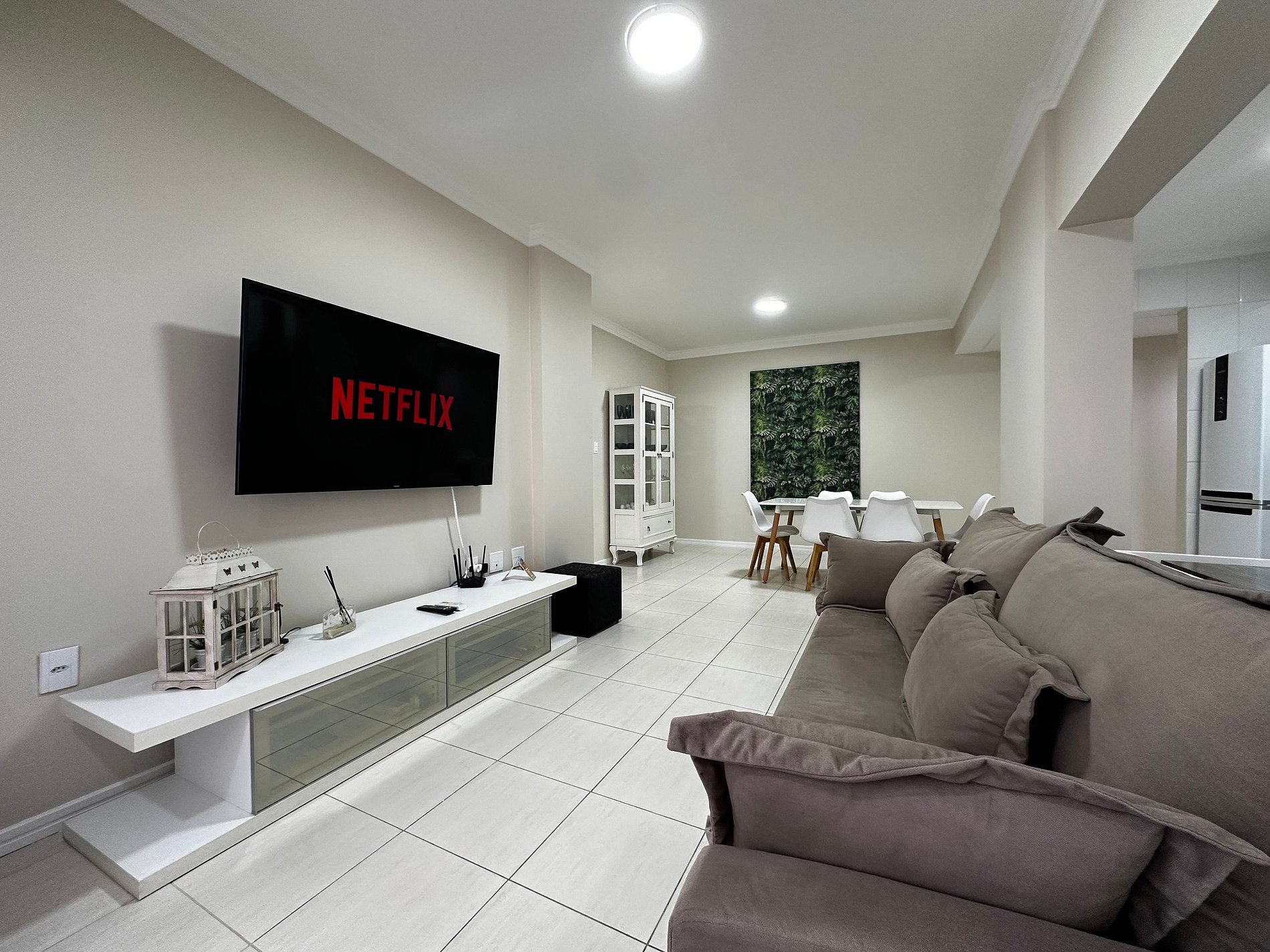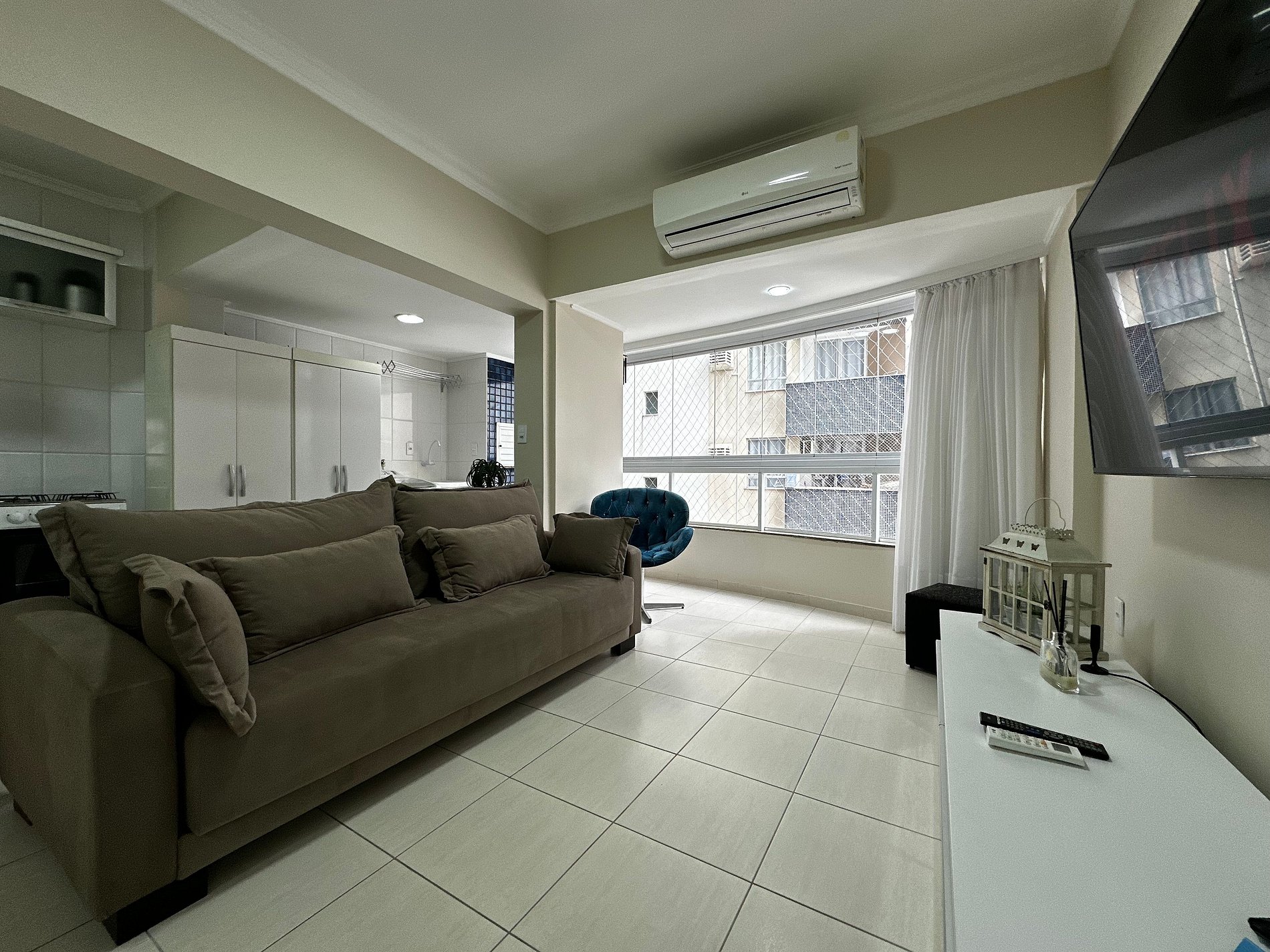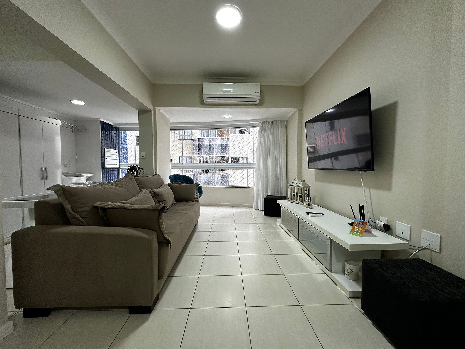 - Sala com sofá grande novo super confortável + TV Smart 47" polegadas com app como Netflix, Globoplay, Amazon Prime (necessário conectar com a conta própria)