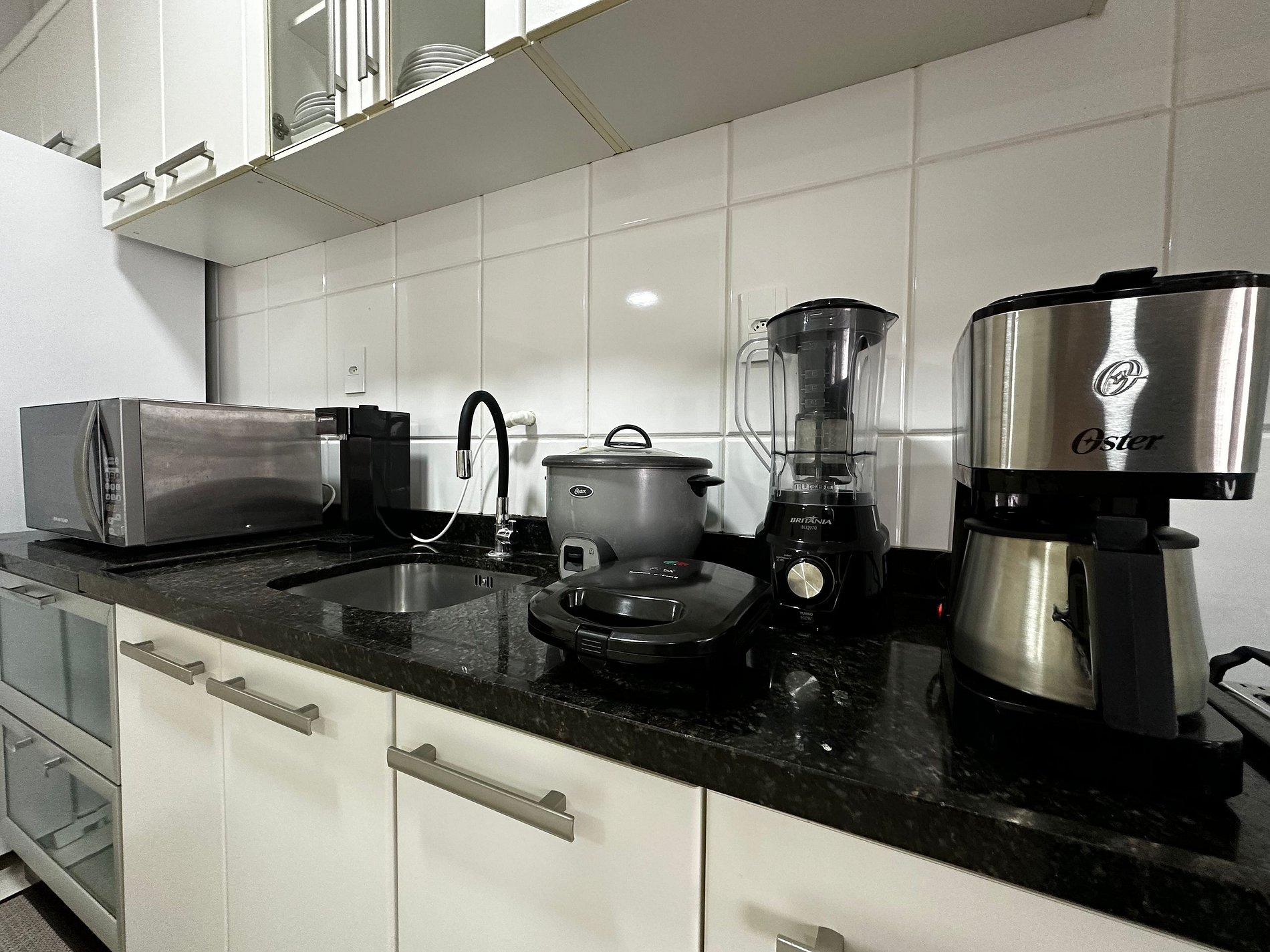 - Cozinha muito bem equipada com tudo que precisar para curtas e longas estadia, geladeira duplex, microondas, forno, cafeteira elétrica, liquidificador, sanduicheira.