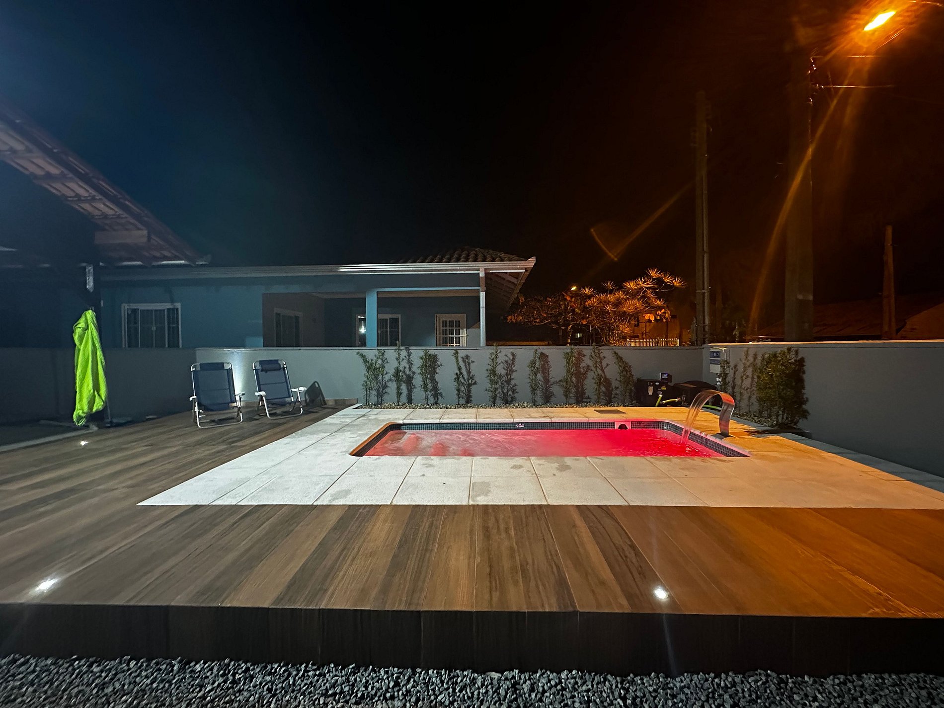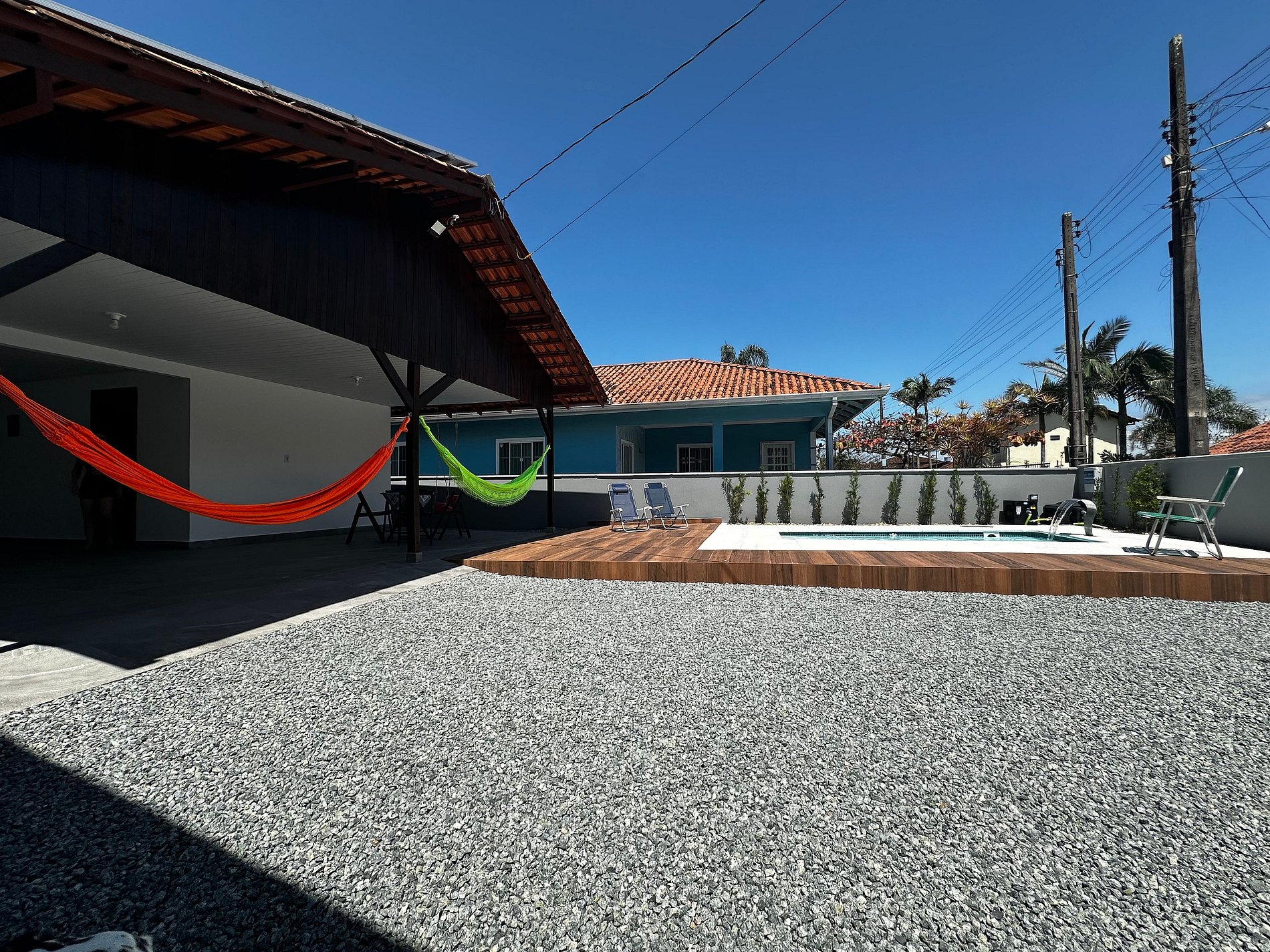 Tradicional casa de praia com piscina aquecida, muito bem equipada e confortável, localizado à 1 quadra do mar em Balneário Barra do Sul. Composto por 3 quartos sendo 1 suite, todos com ar condicionado split novos. Sala com TV 42" Smart e canais à cabo, filmes e séries. Fornecemos roupas de cama e banho para todos os hóspedes. . Área externa conta com uma varanda com churrasqueira à carvão, mesa para refeições, além de 5 pontos de rede. No quintal cabe 2 carros tranquilamente.