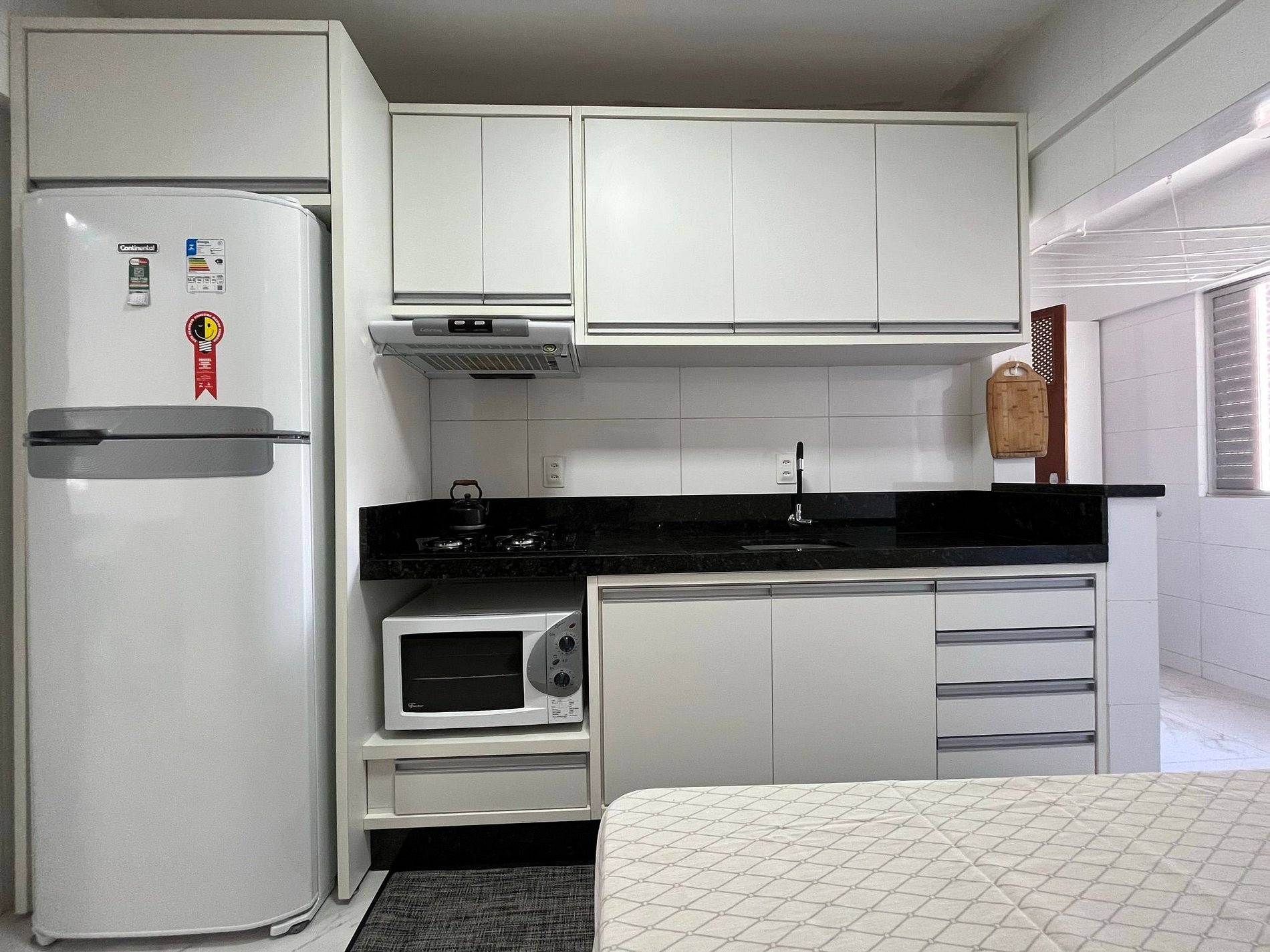 - Cozinha completa para o dia-a-dia de refeições (geladeira, microondas, liquidificador, sanduicheira, mesa para café da manhã, etc...)